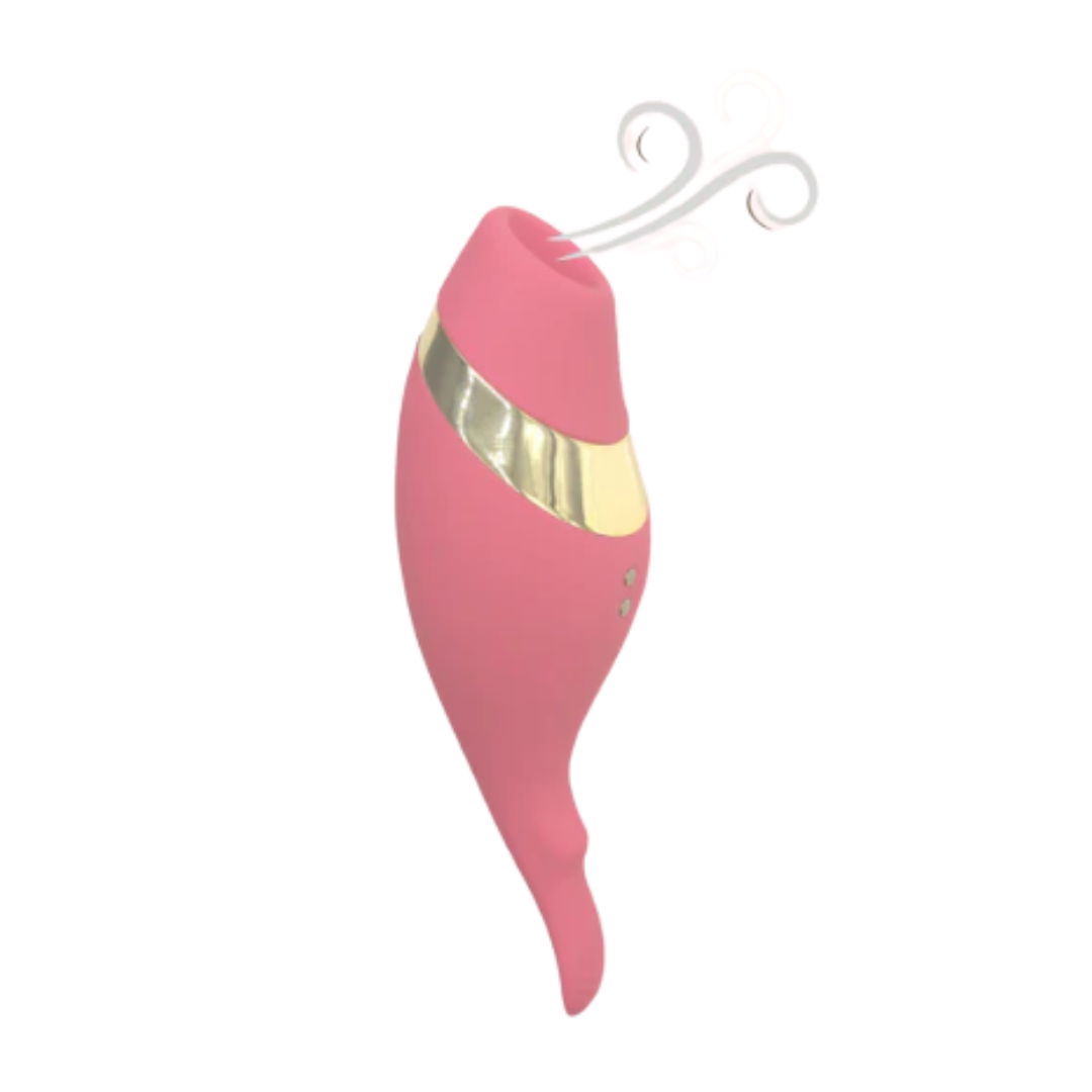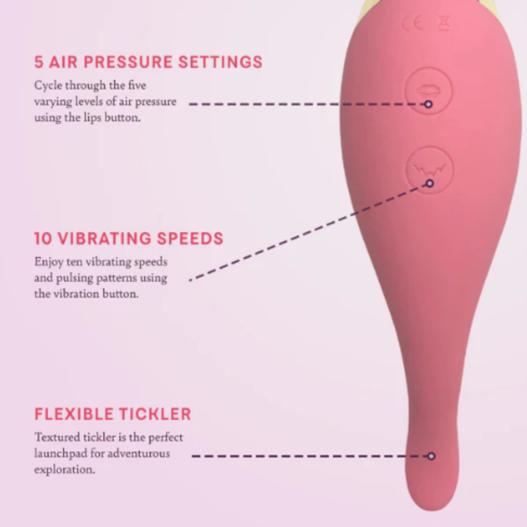 Meet your match with The Adventurer, an exclusive invitation to pleasure. This expertly crafted accessory allows you to explore new dimensions of desire with different types of clitoral stimulation. Set in premium silicone, the gold accent adds a luxe touch while the rounded shape fits perfectly in hand. Let the textured end tantalize with multiple vibration speeds and patterns or fit the accessory's opening around the clitoris for air pressure that takes your breath away.
