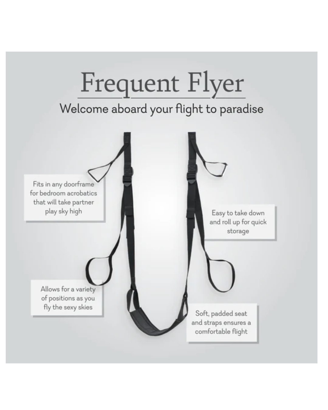 Board your non-stop flight to paradise with the Frequent Flier Door Swing. This position aid fits in any doorframe for bedroom acrobatics that’ll take partner play to a whole new level. Once seated, position the straps and get ready to move in ways you never imagined. The swing’s design allows your partner to take hold of the seat to angle your hips. Simply set up the swing in your doorframe, adjust the straps as needed, and get ready for ultimate satisfaction.