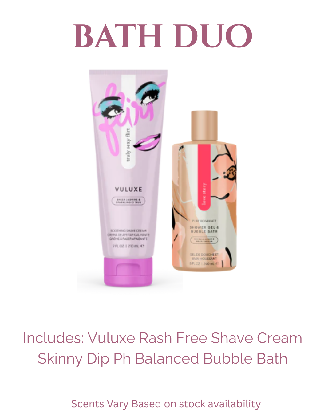 This duo is perfect for self-care or daily use! Includes the rash free shave cream, Vuluxe; & the Ph Balanced Bubble bath!