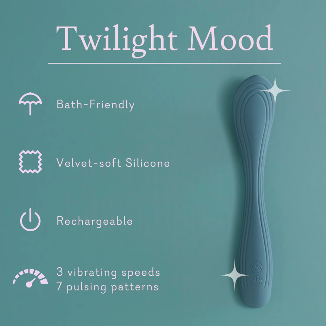 Overwhelming you with breathtaking vibration from the inside out, Twilight Mood bends to your every seductive whim with 10 vibrating speeds and pulsing patterns. Keep this flexible wand vibrator to yourself for clitoral massage or use with a partner for twice the satisfaction.